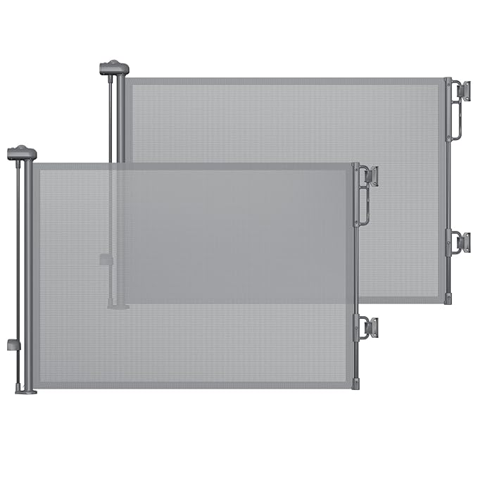 - Expandable Design with Two-Pack Option: Extending up to 55" wide and 34" tall, this retractable gate neatly rolls up when not in use, making it easy to convert rooms as needed. Available in a convenient two-pack, it provides added flexibility for covering wider areas or multiple entry points in your home