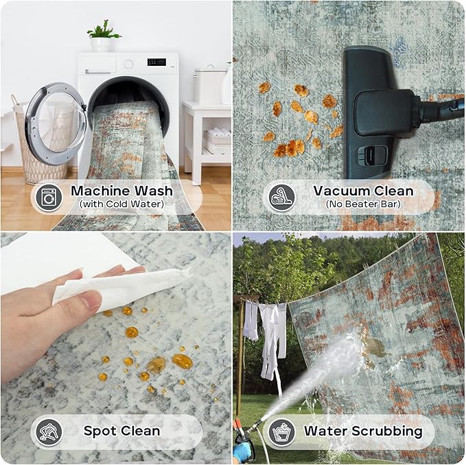 - Easy Maintenance: Keep your space fresh and clean with minimal effort. Our modern 5x7 area rugs are machine washable, spot-cleanable, and vacuum-friendly, making maintenance a breeze. Use a low-power vacuum regularly to remove dust or pet hair for everyday care. Avoid using bleach for best results