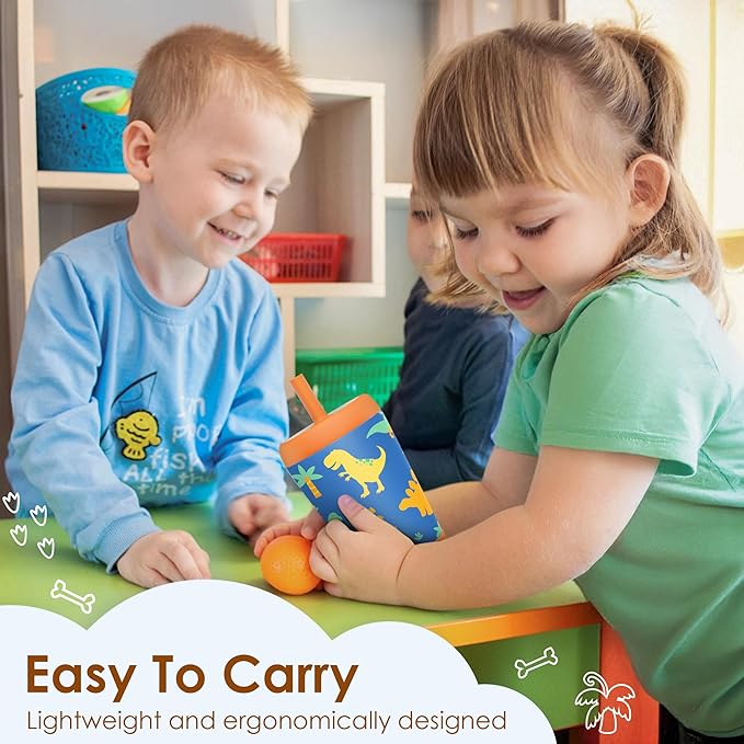 - Spill-resistant straw spout: the silicone straw features a built-in valve that allows liquid to flow only when sipping; helps reduce spills if the tumbler is tipped over; soft and flexible straw provides a comfortable drinking experience for kids and toddlers.