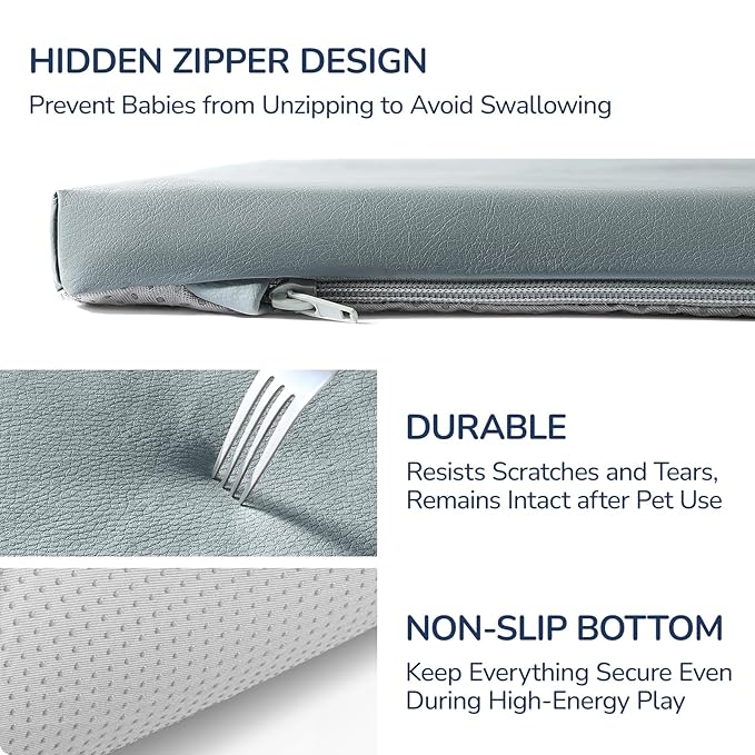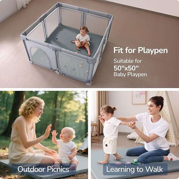 - Effective Cushioning & Ensure Safety: The baby play mat is made of 1.3'' thickened slow-rebound memory foam, which can quickly disperse the impact force when the baby falls or collides (such as head or knee hitting the ground), ensuring the baby's safety. The cushioning effect is better than traditional EPE/EVA foam pads.