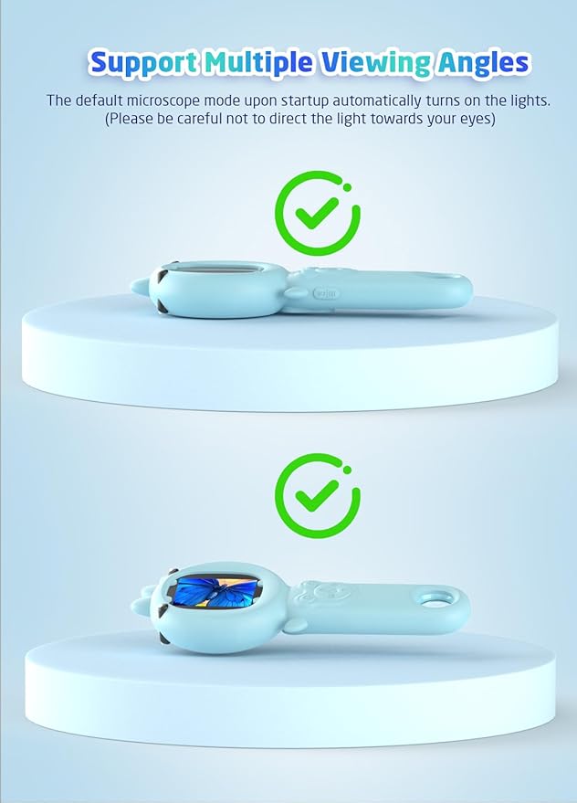 - Safe & Durable Portable Kids’ Microscope: This 2 Inch IPS kids' microscope is made of safe ABS material, and comes with a silicone protective case and a hanging rope, which is drop resistant and durable. it measures 6.77 * 2.87 * 0.55 inches and weighs 0.23 pounds, which can be held by hand, hung around the neck, or carried in a pocket, making it suitable for the child to use