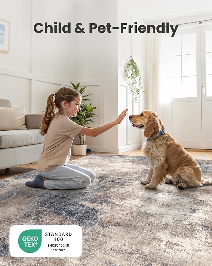 - 【OEKO-TEX Certified Quality】This washable area rug 9x12 is crafted from OEKO-TEX certified, skin-friendly materials, making it an ideal surface for children & pets. The soft feel provides a cozy barefoot experience all day long.