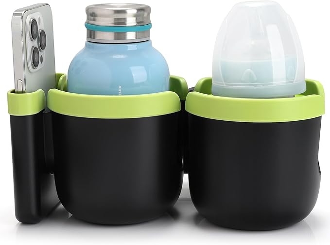 - This 2-in-1 stroller cup holder with a phone holder, it can load drinks bottles and cell phone at the same time. You can see new messages, incoming calls in the first time when you are pushing a stroller or running on a treadmill. It is applicable to most cell phones on the market.