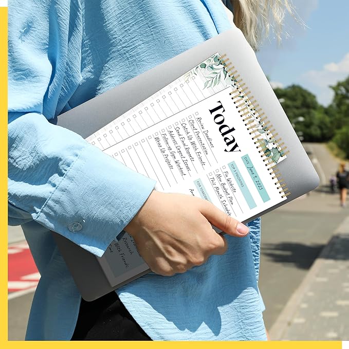 - Spiral Coil Design: The planner features a sturdy spiral coil binding, which is easy to flip open and lays flat for a comfortable writing experience. The convenient tear-off design makes it a breeze to remove completed pages without damaging the rest of your notebook—perfect for quick updates and a fresh start each day.