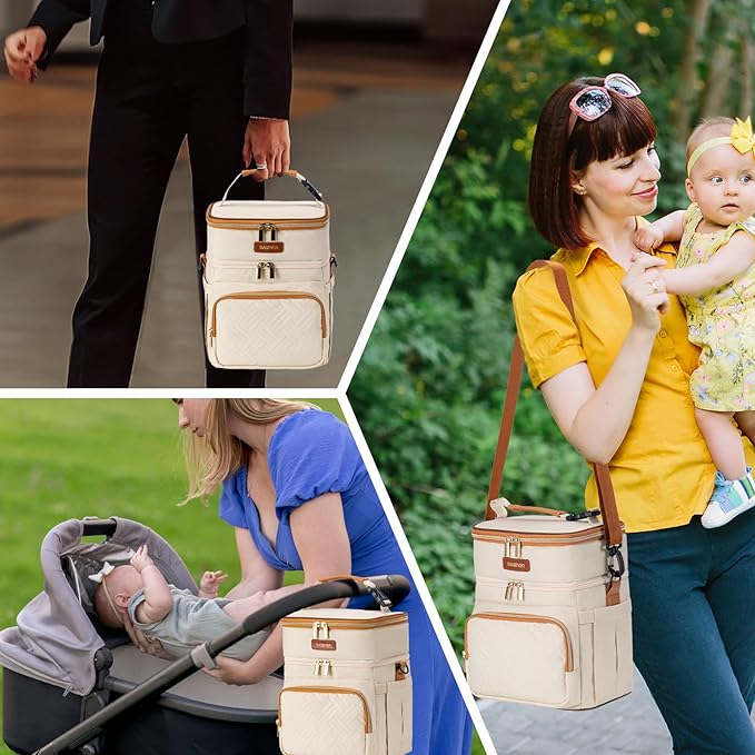 - Smart Double-Layer Organization & Versatile Use:Size of the breastmilk cooler bag is 9.2"D x 8.5"W x 11.2"H,maximize storage with dual compartments holding 6 bottles (9 oz each) and wearable pump or snacks. Perfect as a breastmilk cooler bag, daycare lunch box, or portable snack organizer. Keep essentials separated and secure for on-the-go convenience.