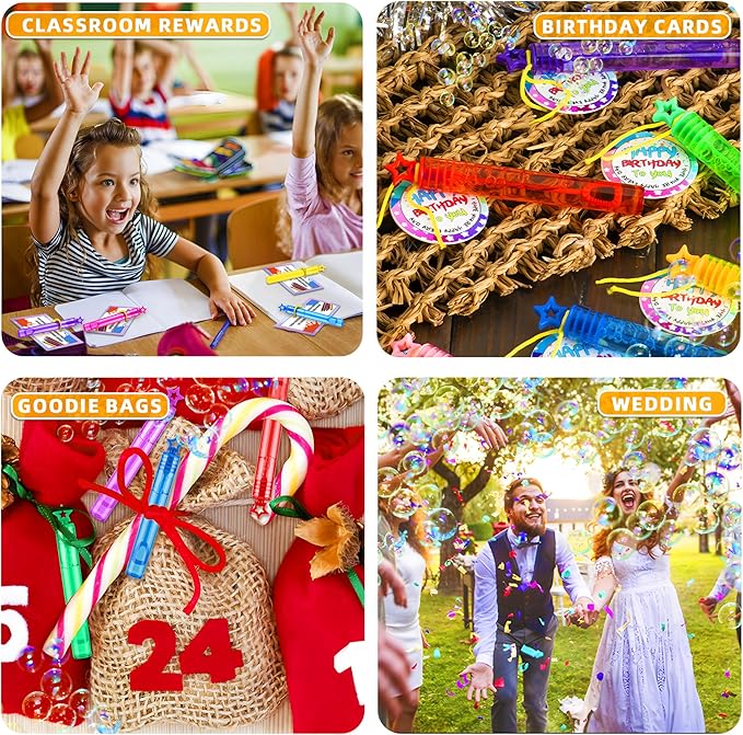- 100-Piece bubble wands bulk pack: Ideal for party events, ensuring everyone gets a wand.