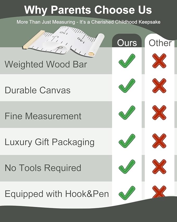 - 🎁Thoughtful Gift for Families – The ultimate sentimental gift for expecting parents, birthdays, or holidays! A practical yet sentimental kid height tracker for birthdays, baby showers, or holidays. Celebrate every inch of your child’s journey with this keepsake kids height measurement set.