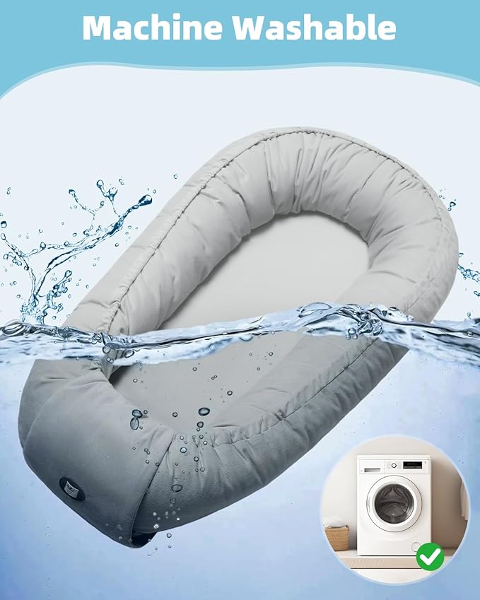 - Full detachable & machine washable: Parenting is messy-but we've got you covered. Every part of this lounger is fully detachable, the cotton cover is machine washable. It resists pilling and fading after repeated washes, ensuring it can be used for a long time. Whether it's spit-up, drool, urine stains or food spills, simply remove the cover and put it into the washing machine. Save time on laundry, you will have more time to cuddle and play with your baby!