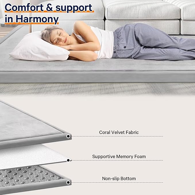 - 🐣SAFE & COMFY: Our baby play mat is made of 100% coral velvet material and filled with high-quality 3.5cm thick memory foam,eco-friendly and durable, providing a safe and comfortable play area for your babies, without worrying about them hurting themselves on hard floors.The surface of this tummy time mat is velvet cover, which is not only soft and comfortable to touch, but also has a good cushioning effect.