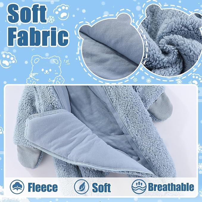 • 🐻【High Quality Fabric】 The newborn baby winter jumpsuit bear onesie hooded snowsuit made of high-quality cotton polyester, the inner layer is cotton, the outer layer is fleece fabric, soft and warm, protect the baby's skin, warm your little one throughout autumn and winter.