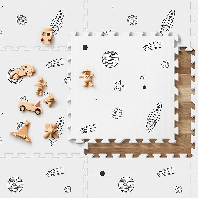 - SPACE PATTERN DESIGN: The space design adds a fun and magical touch to any nursery, making it a perfect spot for your little one to grow and play making it a pleasant place for your little ones to interlock foam floor tiles. Made of soft high-quality materials, the non slip bottom ensures its stable placement, making it provides a safe and calming play area for your baby or toddler.