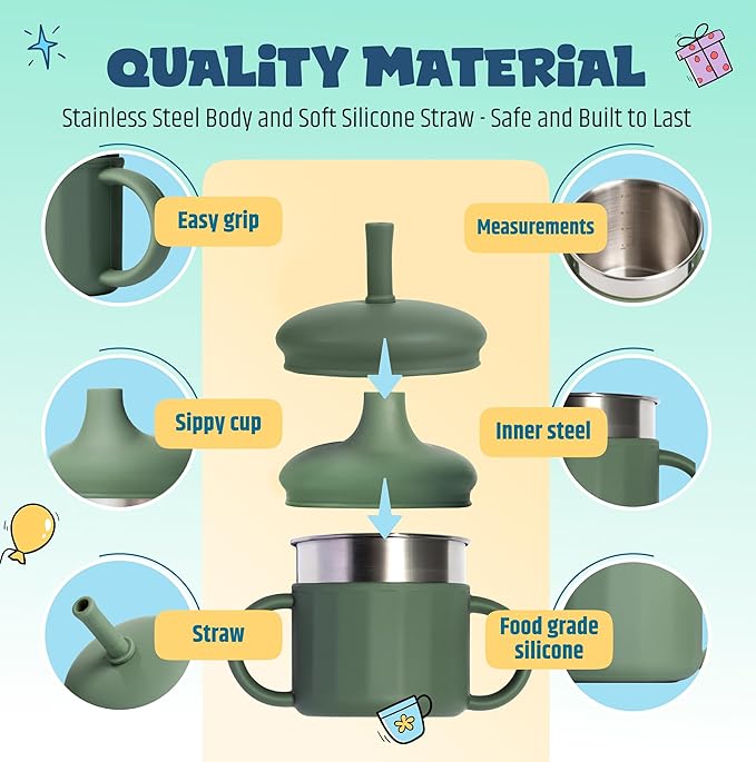 - Eco-Friendly Choice –Unlike traditional plastic cups, this stainless steel toddler and kids cup reduces waste and lasts longer. It's the perfect alternative for parents seeking baby sippy cups with lids for 12 months that are both durable and environmentally friendly.