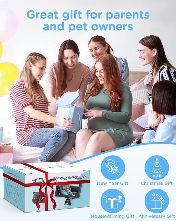 - FAMILY MUST HAVE: The Baby Car Camera is ideal for baby christenings and registries. This baby car monitor not only allows parents to keep a close eye on their newborn, but also adds a layer of security to every trip. Whether as a gift for a friend or as a precious addition to your family, a baby backseat camera is a must-have for safety on the go.
