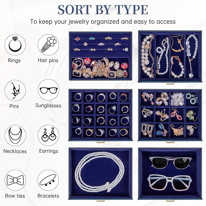 - 【LARGE CAPACITY】With 6 versatile pull out drawers, this huge jewelry box can store a lot of jewelry accessories, such as rings, earrings, necklaces, chains, bracelets, and so on. One deeper drawer is designed for large jewelries