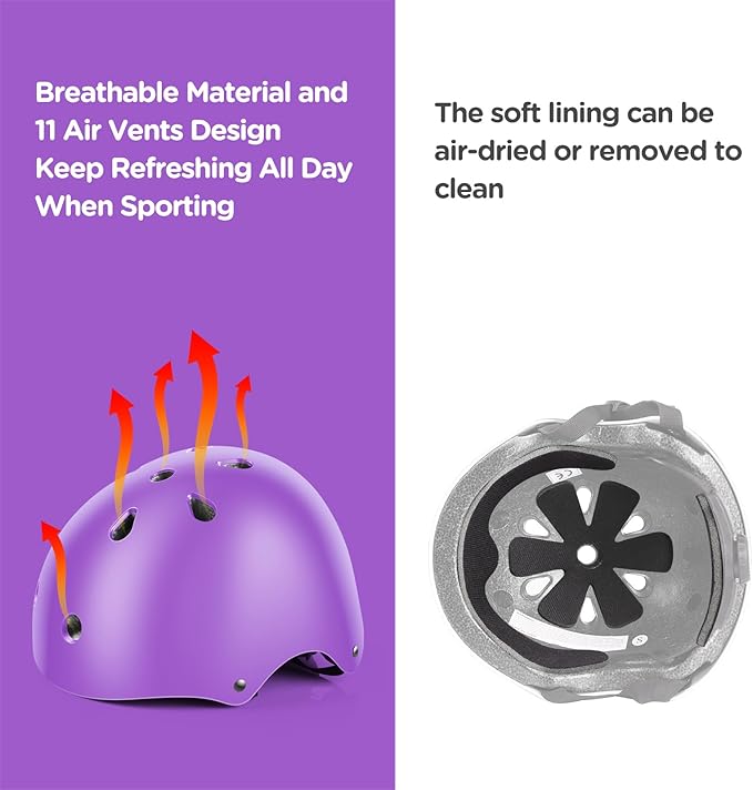 - Wonderful Material -- Our kids safety gear is adopted anti-scratch high hardness PVC shell padded with Soft EVA material. Those high-quality liners are not only durable for many years, but also breathable. Adopted ventilate fabric to keep cool and clean while biking, riding, cycling and skateboarding