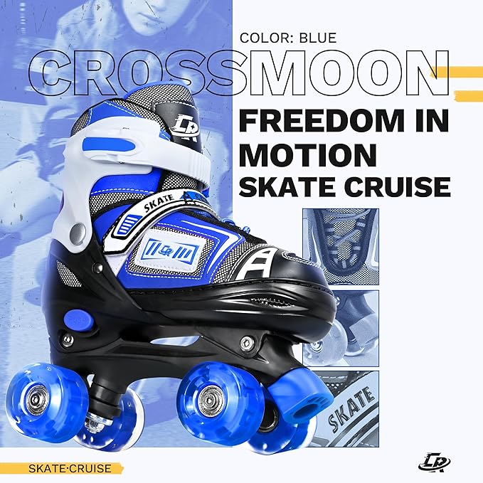 - ✔️ 4 Size Adjustable – One Pair Fits Multiple Sizes Designed to grow with your feet, these quad skates adjust across four sizes for a long-lasting fit, ideal for boys, girls, teens, and adults.