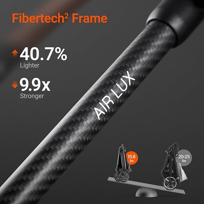 Air Lux Baby Stroller with Carbon Fiber Frame, One-Hand Fold & Reversible Seat, Magnetic 5-Pt Harness, Car Seat Adapter, 15.8lbs, Meteorite