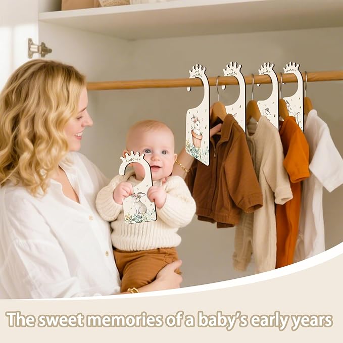 - 【Premium Material】 These baby closet hangers dividers are made of high-quality wood, with polished surfaces and edges. The smooth finish ensures they won't scratch clothes or hands, and the durable material allows for long-term use, perfect for baby shower newborn party gift