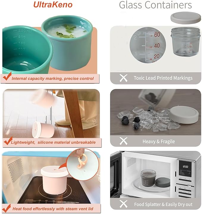 - Portable Size: Each kids lunch box containers size is 3x2.6x2.2 inch. The perfect size snack containers can easily fit into any corner of a satchel backpack, or lunch bag. The silicone food storage containers available volume is 8 oz; 250 ml