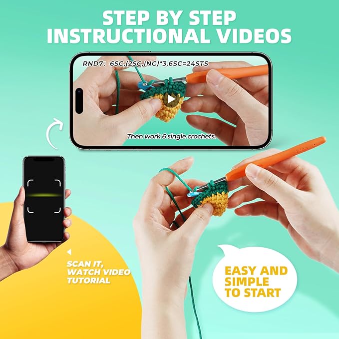 - 【Step-by-Step Tutorials】 Each crochet kit for beginners comes with text and step-by-step video tutorials. Beginner crochet kit ensures that you feel confident as you learn new stitches, making it a great choice for crochet kit starters.