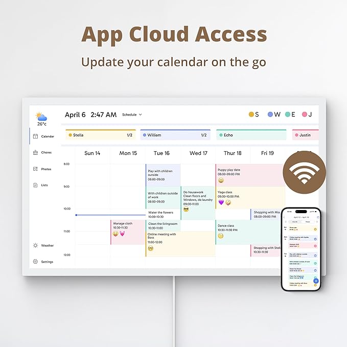 - 【Manage from Anywhere】: Stay connected with the powerful eCalendar App. Access and manage your calendar on the go, with free features like a photo frame, chore chart, dinner plan, grocery list, and more. Paid functions like Magic Import offer advanced tools tailored for users with special needs.