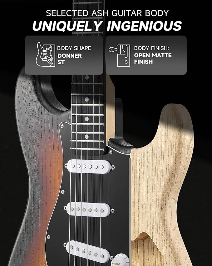 - PERFECT FOR ALL, UNIQUE FOR YOU:Whether for kids or adult, beginner or seasoned, this all-inclusive set is the ideal way to kickstart your rock journey. Crafted from premium Manchurian Ash with an open matte finish, each guitar is uniquely beautiful and makes an unforgettable present for any occasion, from Christmas to birthdays