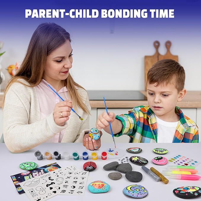 - Unleash & Spark Creative Expression - This arts and crafts kit for kids ages 6–12 is designed to ignite imagination. With colorful paints and fun tools, children can decorate rocks and create glowing masterpieces that are as unique as they are. It's a perfect blend of creativity, learning, and fun!