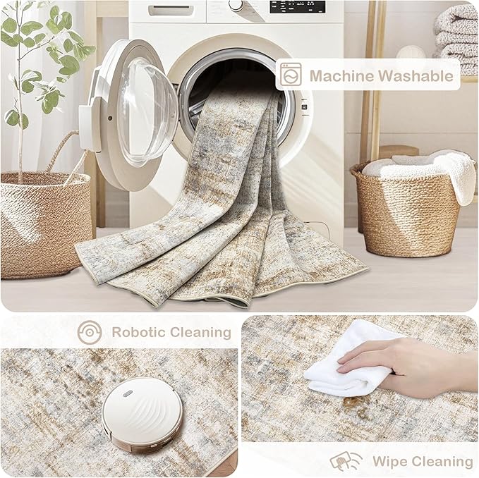 - Anti-Stain Low Pile Rug: Our washable rugs surface pile are short and dense, can block dust and hair embedded, spilled drinks coffee and other liquids will not penetrate into the neutral rug inside; Our 9'x12' large rug is moderately thick and won't snag on doors, which not only keeps indoor rugs clean, but also adds convenience for high traffic areas.