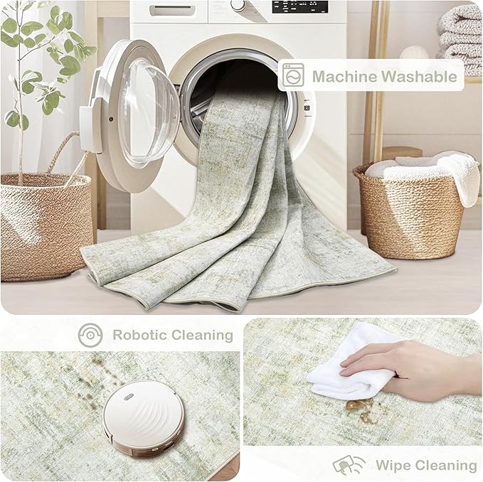 - Anti-Stain Low Pile Rug: Our washable rugs surface pile are short and dense, can block dust and hair embedded, spilled drinks coffee and other liquids will not penetrate into the neutral rug inside; Our 8'x10' large rug is moderately thick and won't snag on doors, which not only keeps indoor rugs clean, but also adds convenience for high traffic areas.