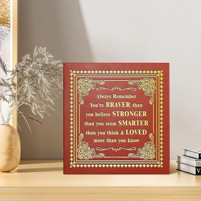 Inspirational Leather Photo Album,Magnetic Self-Stick Page Photo Album,Family Album,Hand Made DIY Albums Holds 3x5, 4x6, 5x7, 6x8 Photos (brown-always remember)