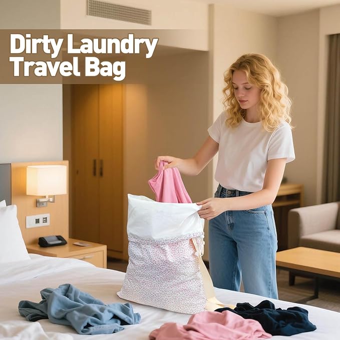 - 【 Drawstring Closure 】The strong drawstring closure with a push-spring lock effectively prevents clothes from getting lost on the way to the washing machine. This floral laundry bag travel can also be used as a laundry basket liner and is perfect for storing dirty clothes during sports, travel, or camping.