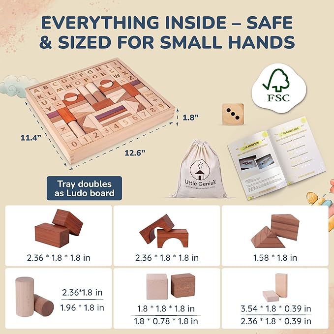 - Premium FSC Beech, Smooth & Durable – Solid wood blocks, hand-sanded edges; FSC-certified and safety-tested for peace of mind.