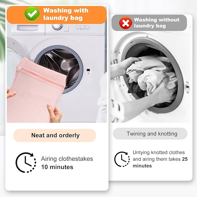 - 【Breathable Mesh, Special Zipper】Breathable mesh allows water to flow in and out smoothly, making it easy for the washer to deep clean clothes without wrinkling. The rust-resistant and durable zipper comes with a rubber band cover. You will say goodbye to zipper scratches on the washer and the opening of the laundry bag during the washing process.