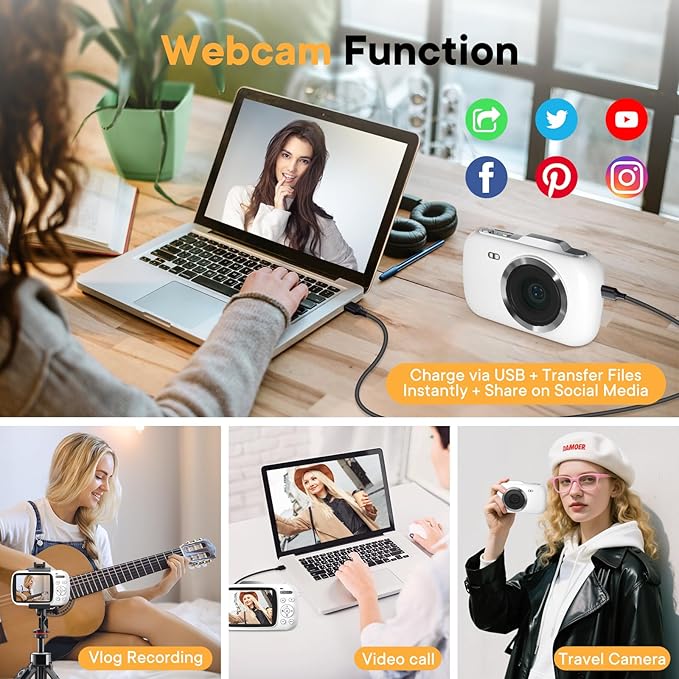 - 【SUPERIOR SUPPORT FOR THIS GIFT】 - Backed by a one year hassle-free promise- refund and replacement. Digital camera, SD card, lanyard, storage bag, batteries, cable, exquisite box..., contains everything you need. It is a perfect gift for boys, girls, teens on birthdays, Christmas or any important events, a first real camera for kids who love to take videos and pictures.