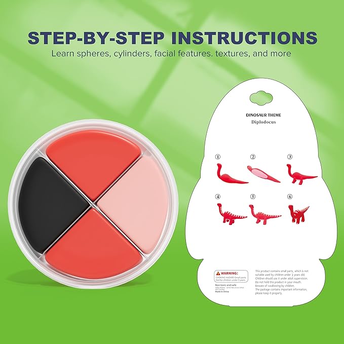 - Dinosaur Theme Clay Kit: Unleash creativity with our complete air-dry clay set! Includes 12 individual boxes of premium clay (each with 4 vibrant colors), 4 sculpting tools, and step-by-step tutorials. Easily craft 12 lifelike dinosaur models using illustrated guide cards. The innovative compartment box keeps colors separated, and leftover clay stores neatly in the sealable container—mess-free fun anywhere!