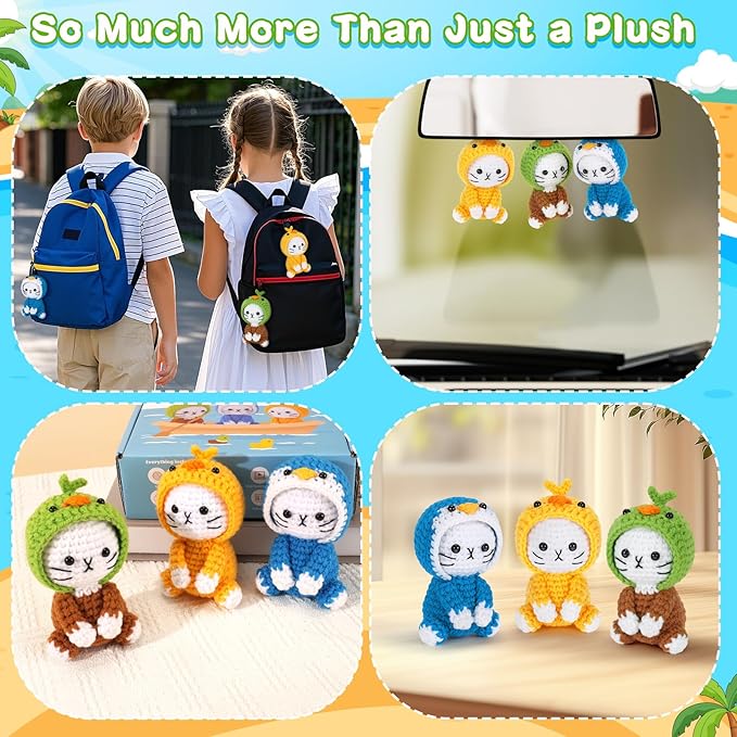 - Create Three Adorable Cat Companions: This kit includes ample crochet accessories to crochet 3 cute cats dressed as ducks and penguin. The finished crochet cats can be used as a home decorations, adorable children's toys, car pendants, bedroom ornaments, bag charms, or key chain. Enjoy the joy of craft and the pride of making your own cute animal figures.