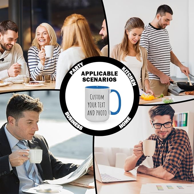 Custom Mug Upload Your Picture Personalized Coffee Mug with Photo Text Name Customized Cup Unique Ideas Gifts for Men Women Mom Dad Girlfriend Boyfriend Friend Family (Blue, 15oz)