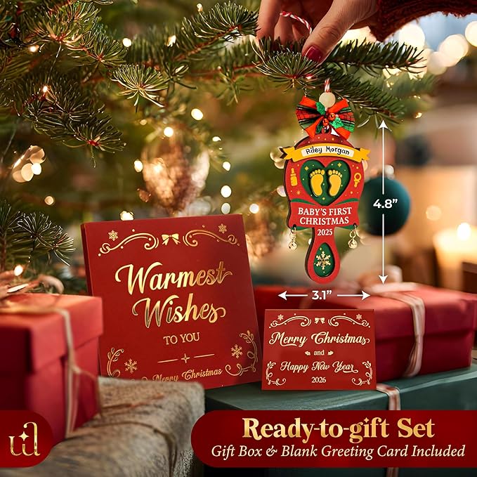 - Careful Packaging: Each baby christmas ornament is wrapped with care and comes with a blank card, so it’s ready to give straight away. A baby ornament meant to last, whether you call it baby 's first christmas ornament, first christmas ornament 2025, or just a piece of your family’s Christmas.