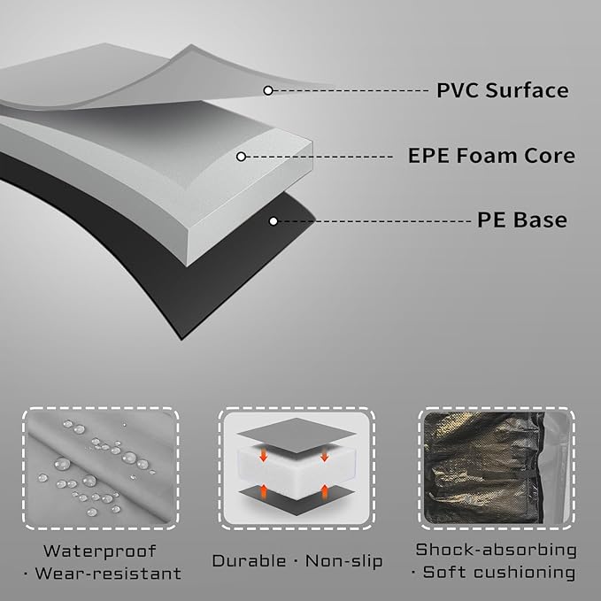 - 【PREMIUM MATERIAL】The outer layer shell is manufactured with high density PVC on top and heavy-duty PE on the bottom, 0.6 inch high-density EPE foam inside